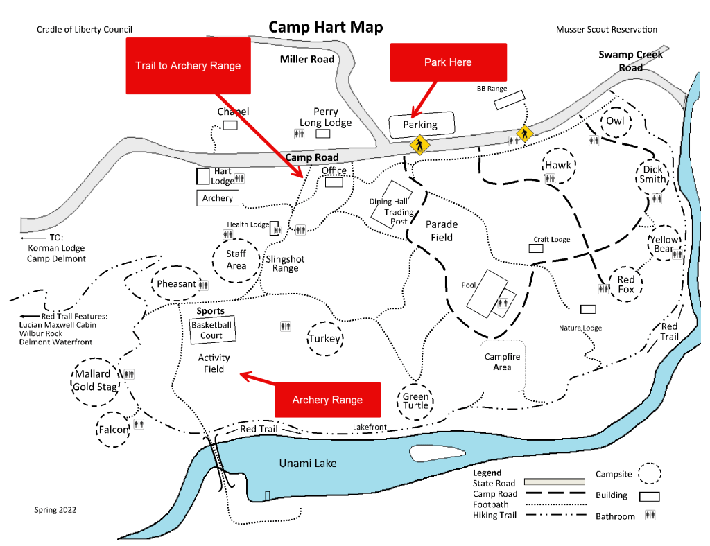 Tomorrow we will be meeting at Camp Hart in Upper Hanover Township for Archery. We have a number of trained leaders in order to run this program and no prior experience is required or expected for cub scouts. All cub scouts, Kindergarten and older, are welcome to participate. Bows and arrows are provided, we recommend bringing a water bottle and listening ears.