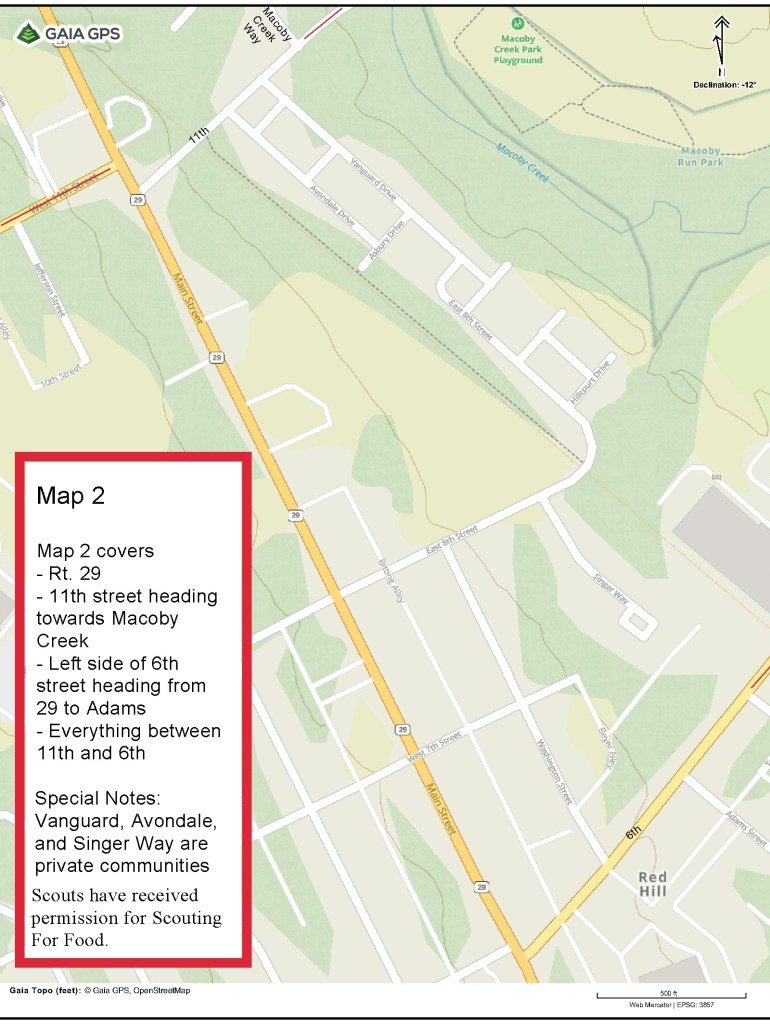 - Older scouts will cover busy roads, including Main Street, 11th, and 6th